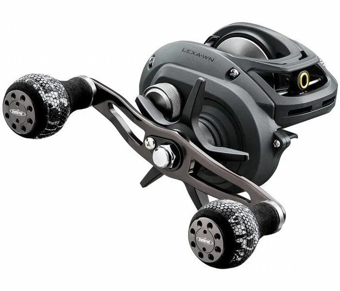 Delivering all of the power and performance that anglers have come to expect from the Lexa series, the Daiwa Lexa WN 300 & 400 Casting Reels offer even more comfort and control with the addition of custom Winn Grip handles. Built to handle just about anything, the Daiwa Lexa WN 300 & 400 Casting Reels utilize Daiwa’s Ultimate Tournament Drag that outputs 22lbs (300 Size) 25lbs (400 Size) of max drag, giving anglers true stopping power.