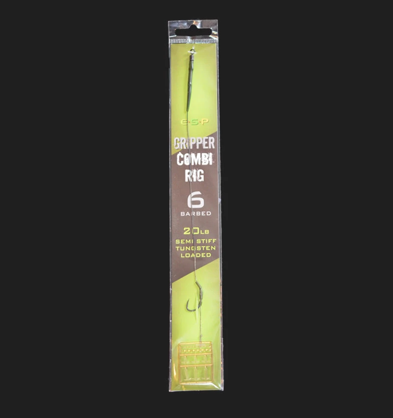 Tied to exacting standards in the ESP factory, these rigs comprise the super strong and sharp Cryogen Grippers to Tungsten Loaded semi stiff coated braid. Available in green and brown and in barbed and barbless sizes 4, 6 and 8.