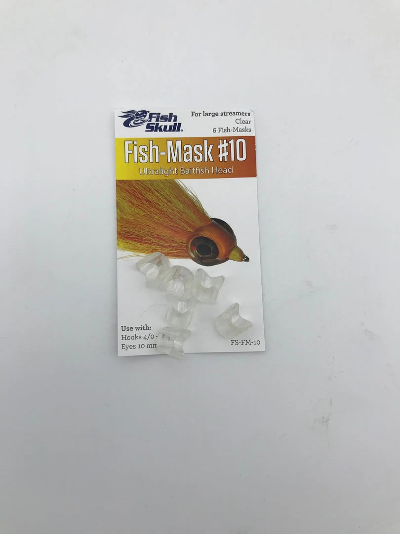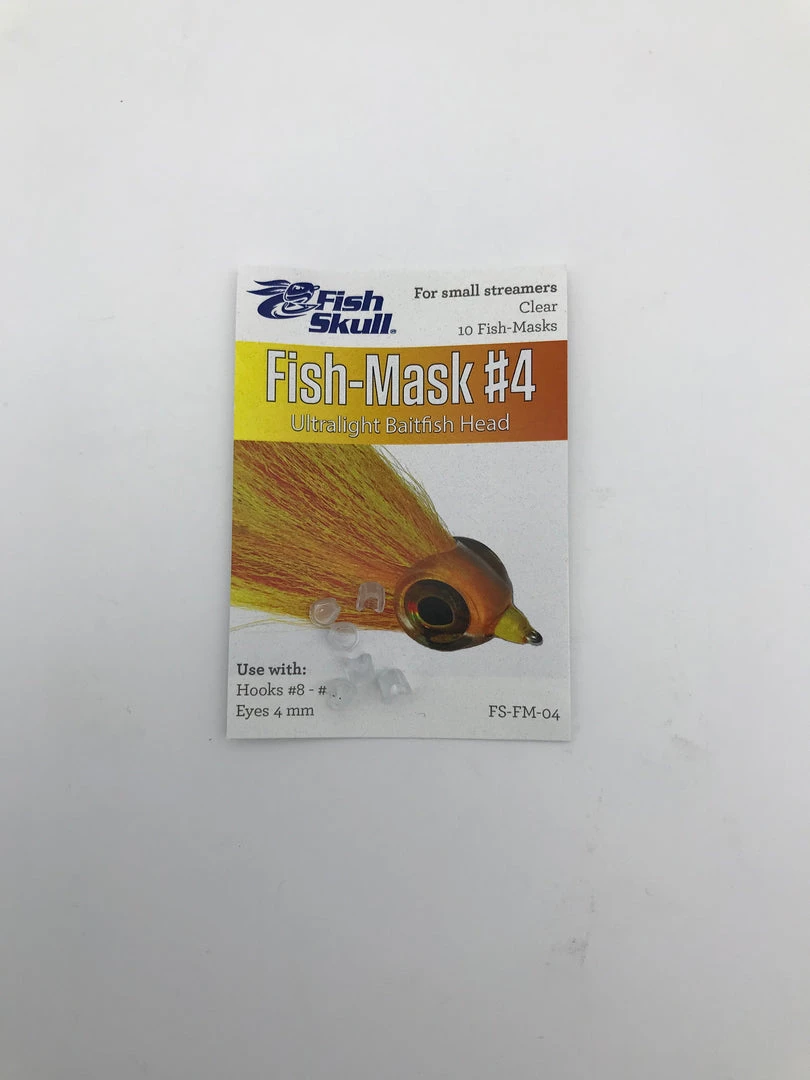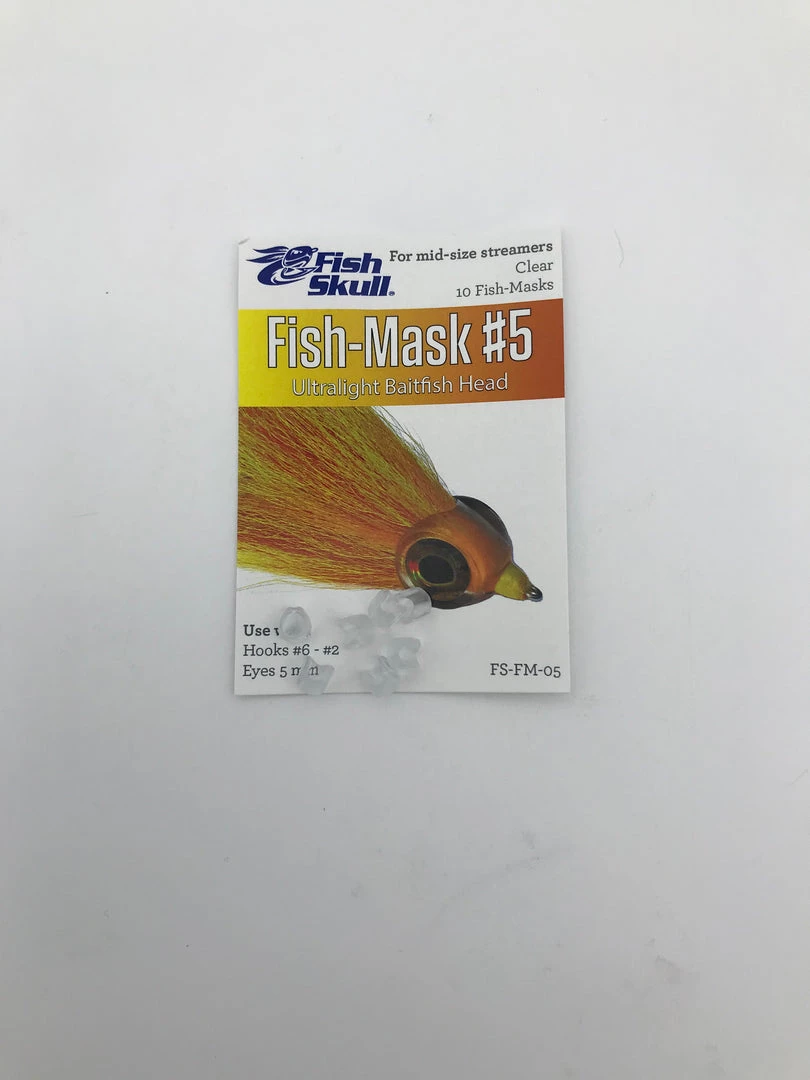 The Fish-Mask is a weightless, clear version of the Baitfish Head that provides a clean, simple and effective alternative to creating heads with epoxies. A realistic baitfish profile and the ability to take on the colour of body materials make it a versatile platform for tying a wide variety of weightless streamer patterns. The 8 sizes in the Fish-Mask range are designed to exactly fit the 8 sizes of Living Eyes (a #4 Fish-Mask uses 4mm Living Eyes, a #5 Fish-Mask uses 5mm Living Eyes, etc.). Quantity per pack: #3 (12); #4, #5 (10); #6, #7, #8.5 (8); #10, #15 (6).