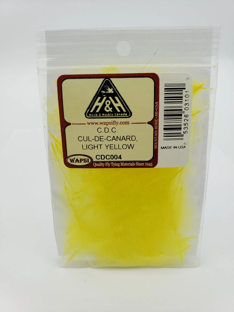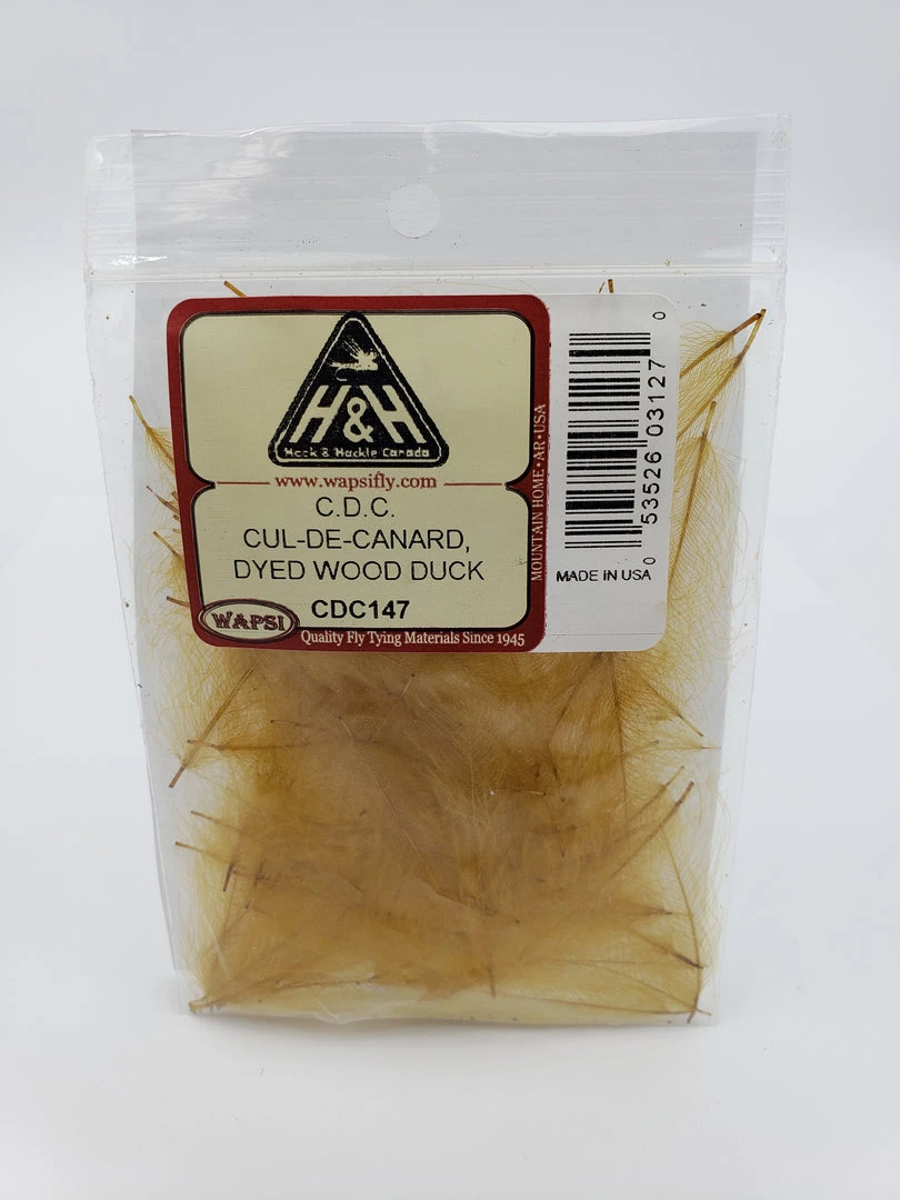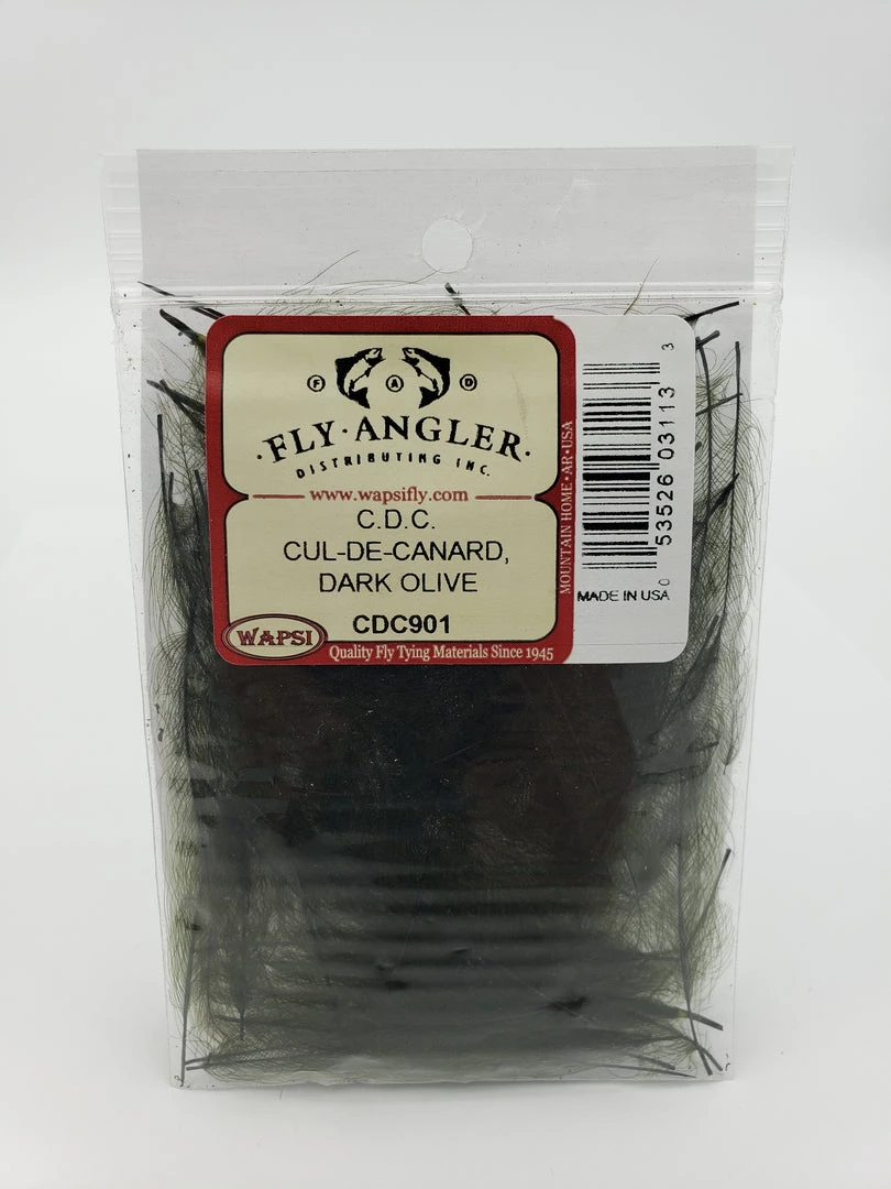 C.D.C. is an abbreviation of the French term Cul De Canard which roughly translated means from the rump or butt of the duck. As the description implies, these are the feathers that surround the preen gland on the back of the bird slightly ahead of the tail. Ducks use secretions from this gland to condition and waterproof their feathers. As a result the feathers surrounding the preen gland are of great value to fly tyers wanting to add buoyancy to their flies.