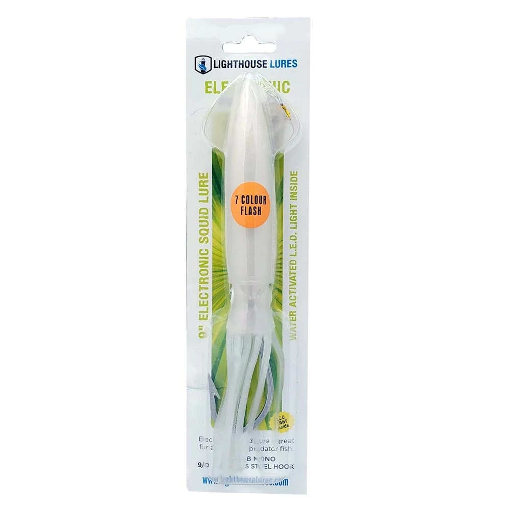 Lighthouse Lures is the leader in producing state of the art electronic fishing lures. For years Lighthouse Lures has been testing different pattern and colour variations to develop the world’s best electronic lures. The 9 Electronic Squid Lures are great for all sorts of game fish including halibut, snapper, yellow eye, grouper, calico, lingcod and amberjacks just to name a few. You can’t go wrong with this lure for any large bottom dwelling fish.