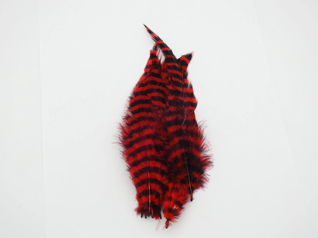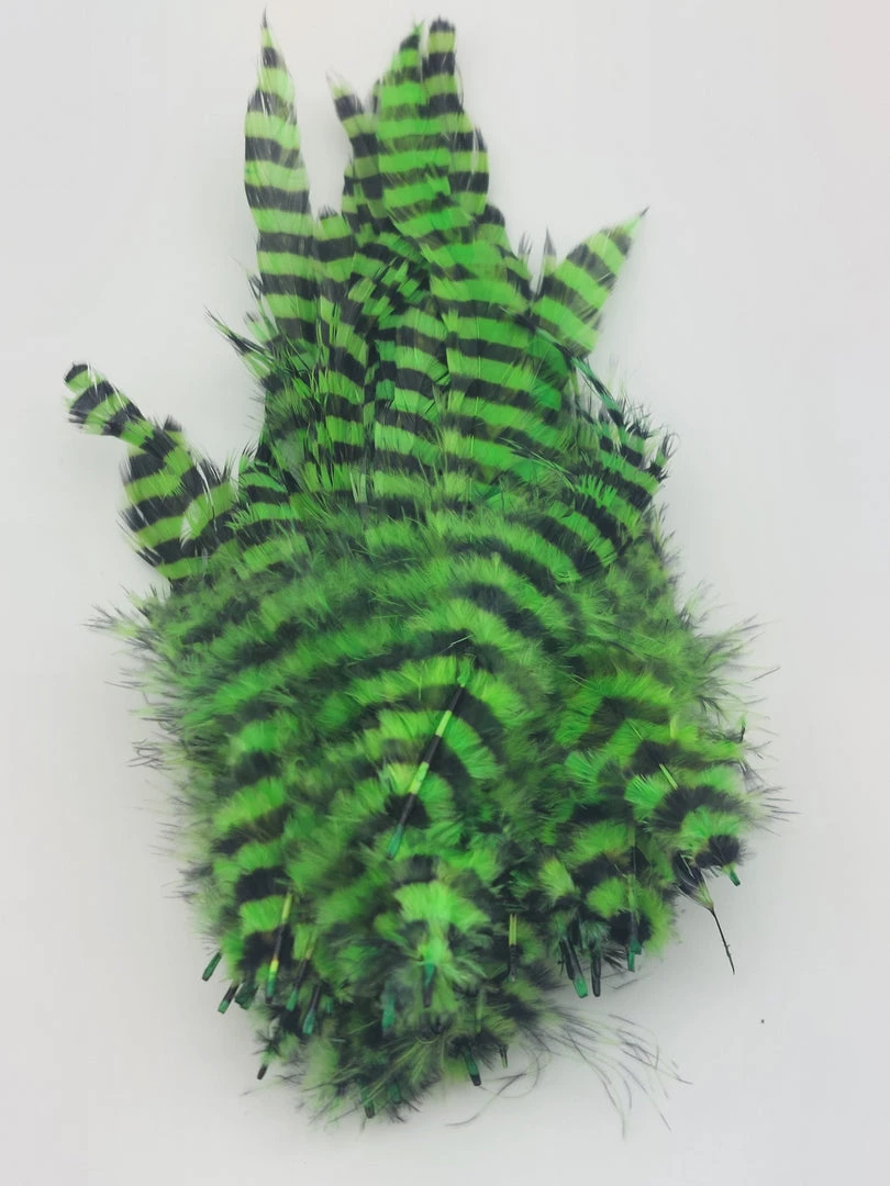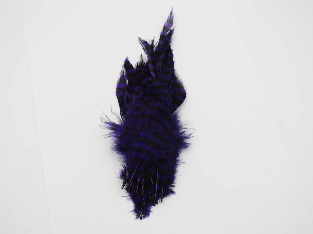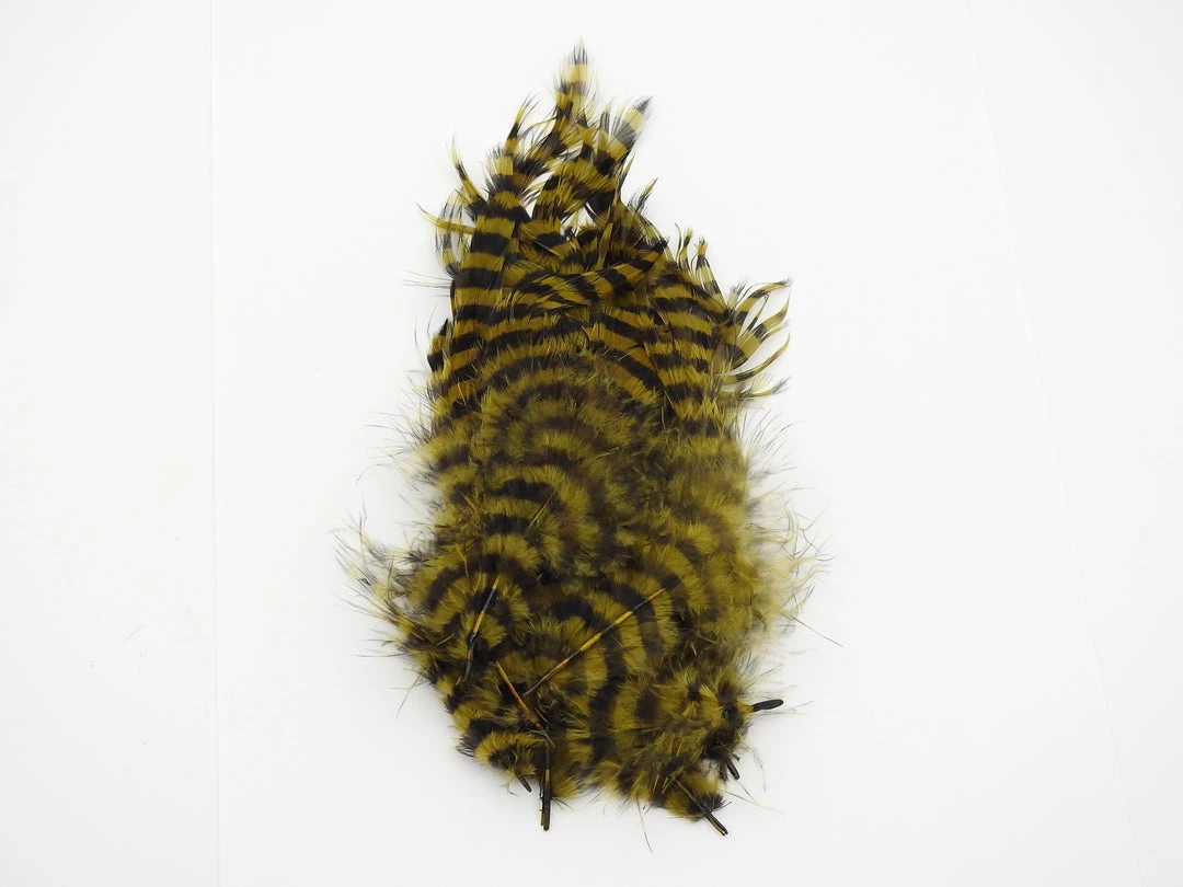 Barred Schlappen comes in a variety of colours. It has nice black bars and works well for anything from a bugger hackle to a tail or collar.