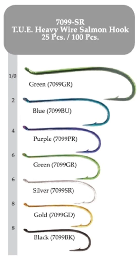 These salmon/steelhead hooks with turned-up eyes are heavy-wire forged. The use of recent advances in hook technology makes MFC Hooks the fly-tyer’s and fly fisherman’s most dependable hook. MFC Hooks are carefully manufactured from H80C high-carbon steel wire. The chemically sharpened needle point offers the best possible penetration. After chemical sharpening, these hooks are coated with an anti-corrosive finish to prevent rusting. The Montana Fly Company has been using these hooks since the founding of the company and have had nothing but perfect success.