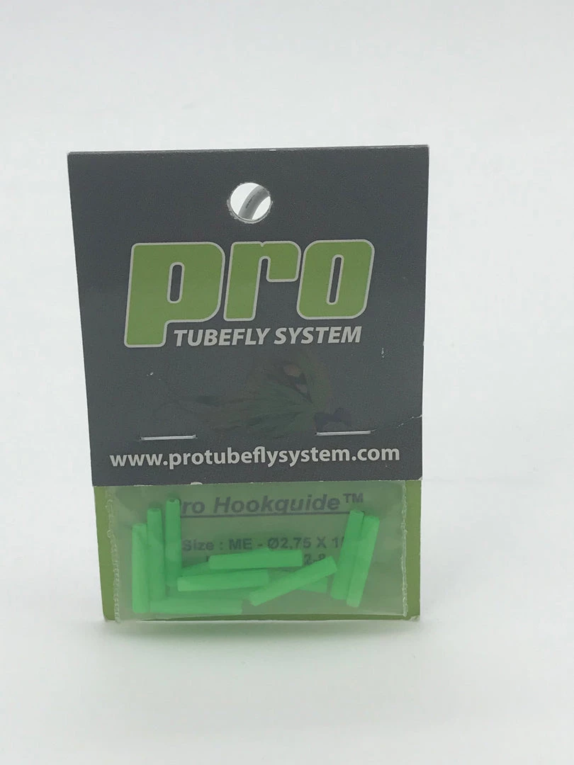 Pro Hookguides are easy to use: Just plug the larger diameter tapered end to the port or back-end of any Pro Microtube or Pro Nanotube. Presto! You have a flexible, durable hookguide for all ring/straight eye, short shanked hooks that are popular today when fishing tube style flies. If you like to fish tube flies with a non-slip loop knot jammed into the tube, don’t worry, Pro Hookguides are still a great compliment to that style of rigging. Tippet knot will jam just inside the tube in this case allowing the Hookguide to stiffen a good portion of the non-slip loop for less or nearly zero chance of “fouling” the fly.