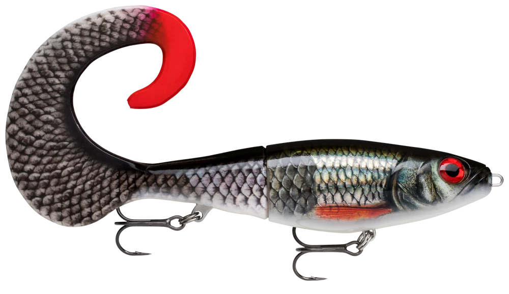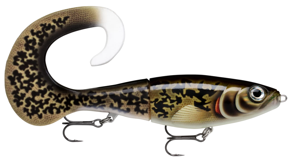 A formidable creature, the X-Rap® Otus, combines Rapala’s fish-catching X-Rap® construction with a beautifully color matched curl tail to create a seamless hybrid bait. With its slow sink rate and wide wafting tail, X-Rap® Otus is the ideal choice for cold water and challenging conditions. The body rolls side-to-side as the enormous curl tail pulses behind when retrieved. When paused, the tail acts as a parachute, stabilizing the lure as it slowly swims into the depths. The soft tail is firmly secured to the body with a 6-point stainless plate. Replacement tail included. Fitted with VMC® Coastal Black hooks.