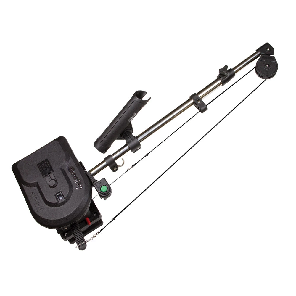 All the features you have come to love with our depthpower series. Now available with more options than ever. Equipped with 300 ft. of 200 lb. test braided line. 36″-60″ long, 11/4″diameter telescopic boom .Included: Downrigger weight storage hook and sure-stop tackle. Fully adjustable descent speed, lifts 7 lb. weights at 235 ft./min. and 15 lb. weights at 203 ft./min. Spray protected positive-drive depth counter and Kevlar drive belt by Optibelt. The lowest amperage draw of any downrigger made with less than 1/3 the battery draw than some of the competition.