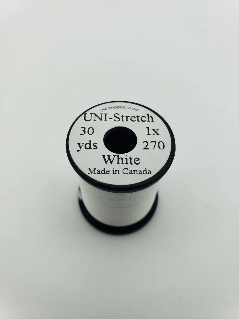 Tired of having strands of floss separate and slide down the hook bend? An exclusive offering of UNI-Products, UNI-Stretch, will solve your problems. This stretch nylon material is easy to wrap, stays in place, and makes excellent underbodies as well. The White takes coloured markers very well so you can customize your patterns. The 30-yard spools come in 25 colours.