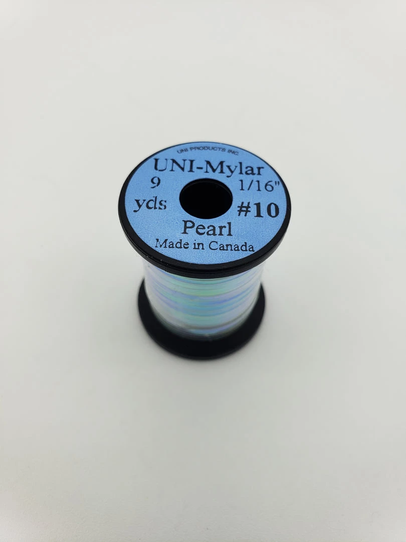Tinsel users will appreciate the choices available in UNI-Mylar. Comes in 4 popular sizes, #10=1/16″, #12=3/64″, #14=1/32″ and #16=1/69″ and a good choice of colours.