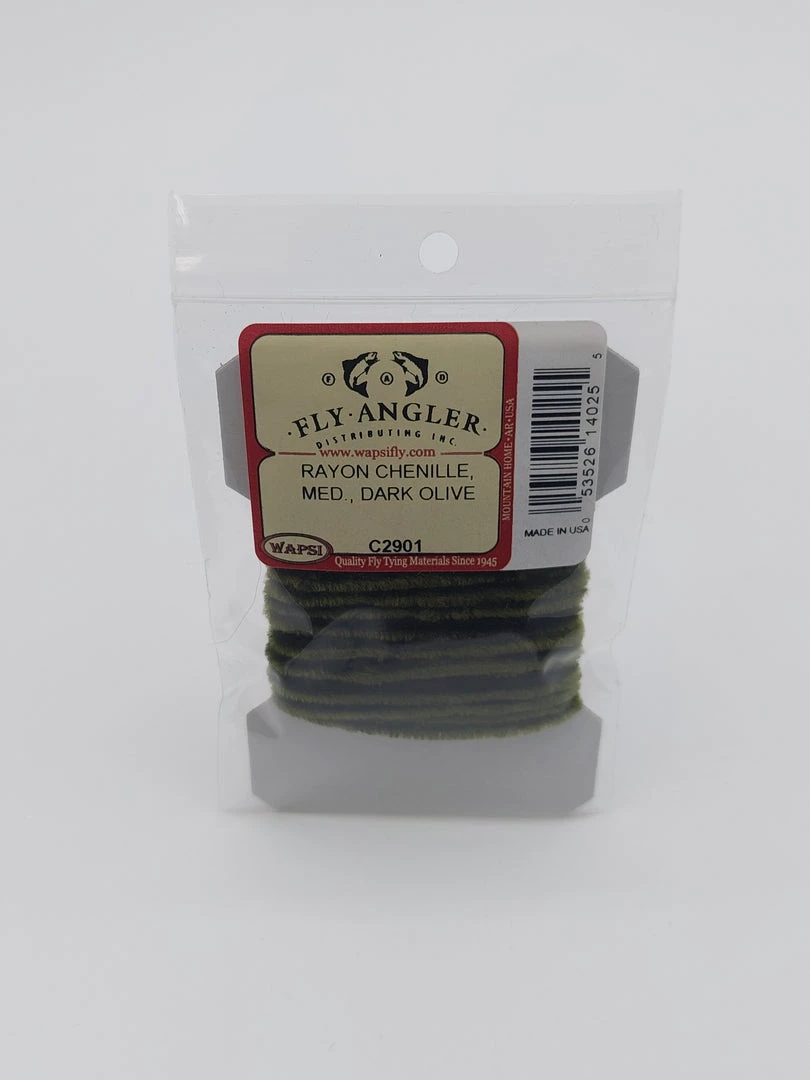 Rayon chenille is a tough material used for wrapping bodies. It lays flat and even, making a uniform body. This chenille comes in many sizes and colours to exactly match your fly.